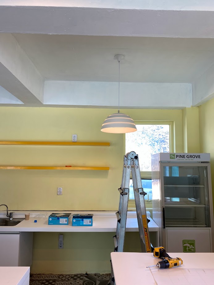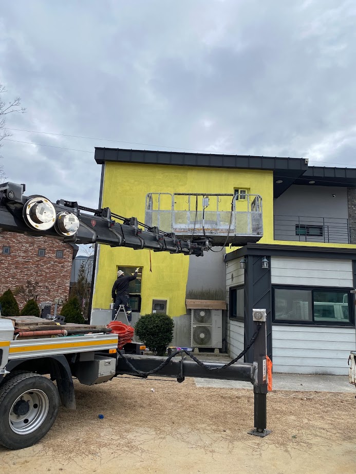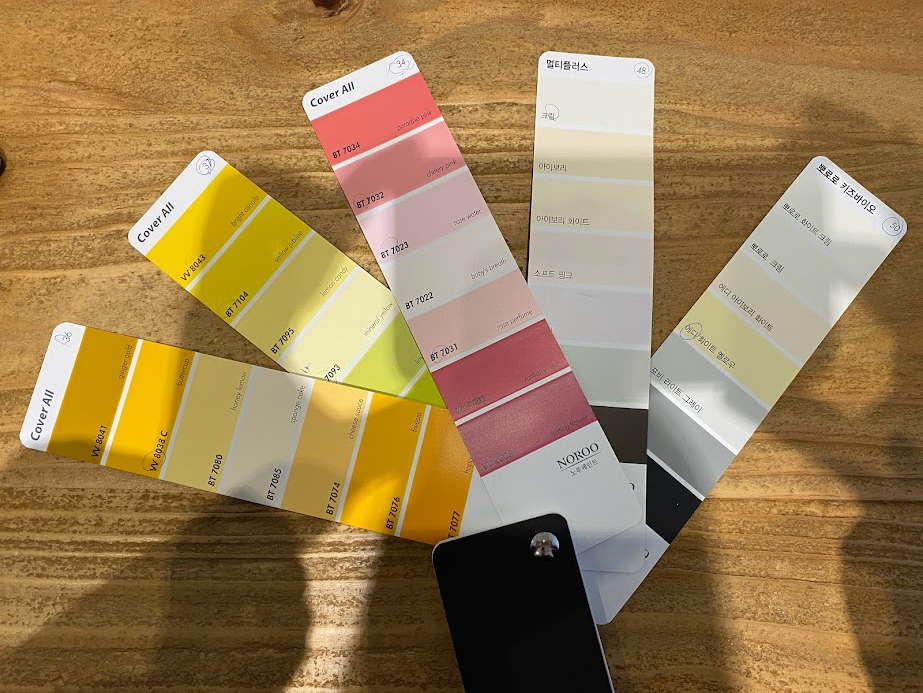 카페 내부에 들어오면 외부보다 한결 부드럽고 은은한 노랑을 만나게 됩니다. 처음엔 이 색이 생각보다 밝게 느껴져서, 흰색을 섞어 좀 더 연하고 차분한 톤으로 조정했어요. 덕분에 공간 전체가 따뜻하고 편안한 분위기를 유지하면서도 자연광과 잘 어우러지는 색감을 완성할 수 있었습니다.
