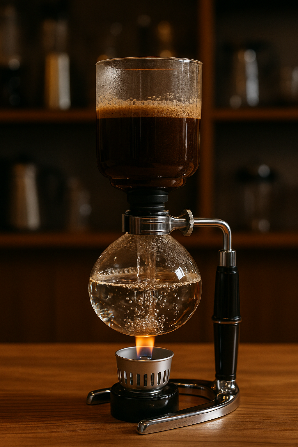 I first encountered siphon coffee while preparing for the Coffee Master certification exam. It was one of the practical subjects, and honestly, I was fascinated by its appearance from the start. Watching water boil in a glass flask, rise up, and then drop down as coffee was brewed—it felt like a science experiment.